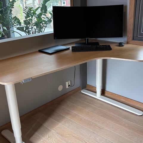 Bordplaten er fra Ikea. Understellet er annet og solid fabrikat.