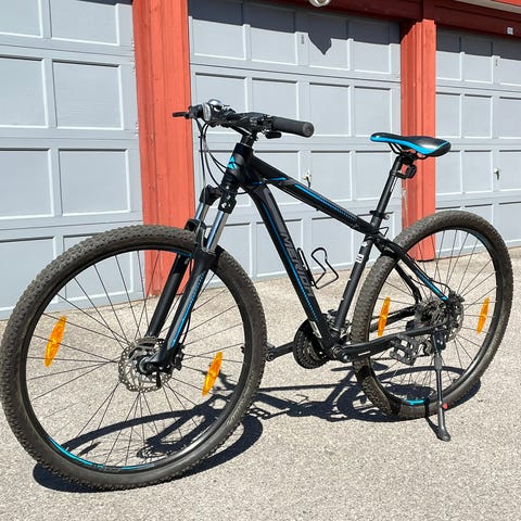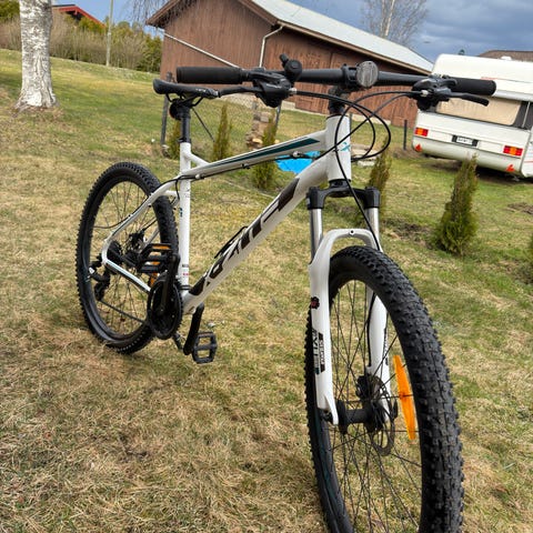 Reservert til søndag ettermiddag. Pent brukt White sykkel str M, passer fra 165 cm -180 cm. Dempegaffel, hydrauliske skivebremser, støtte. Fungerer som den skal. Normal bruksslitasje.