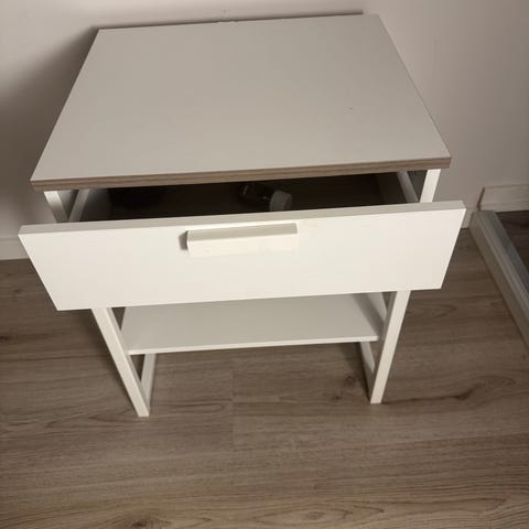 IKEA nattbord hvit med skuff og hylle
