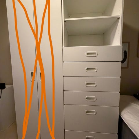 Selger PLATSA-skap fra IKEA. Ikke brukt, kun montert. Selges da vi ikke får plass. Skapet har en skuff øverst og et skap med hylle under. Skapet mangler topplate da denne ble skadet i frakt.