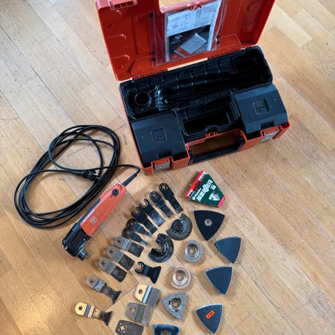 Black & Decker multisliper med koffert og tilbehør. Settet inkluderer elektrisk multisliper med ledning, oppbevaringskoffert, flere slipeplater i ulike fasonger samt diverse småtilbehør/slipespisser. Egnet til sliping og pussing av tre, maling og andre overflater på mindre flater, kanter og hjørner.