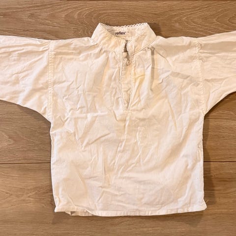 Festskjorte/bunadskjorte i bomull med brodert krage, mansjetter og stolpe foran, fra Cubus. Størrelse 158/164 (13-14 år) Pent brukt, to små flekker bak på ene ermet som vist på bilde.