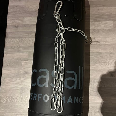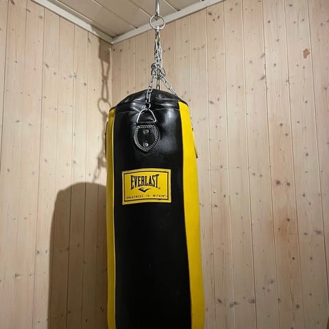 Casall boksesekk med opphengssystem og Everlast treningshansker.