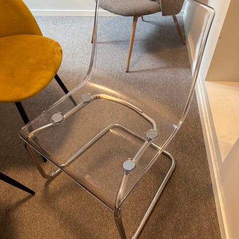 Selger 2 stk IKEA ODGER stoler i lys beige farge. Det er samme farge på stolene, bare tatt i ulikt lys.