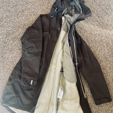 Didriksons regnjakke for dame i størrelse 36. Jakken er blå og laget i polyamid. Den har hette, glidelåslukking foran og lengre passform som gir god dekning mot regn. Ytterstoffet er laget for å tåle vått vær, og innsiden har nettingfôr øverst for bedre komfort. Egnet som ytterjakke på regnværsdager og til hverdagsbruk utendørs.