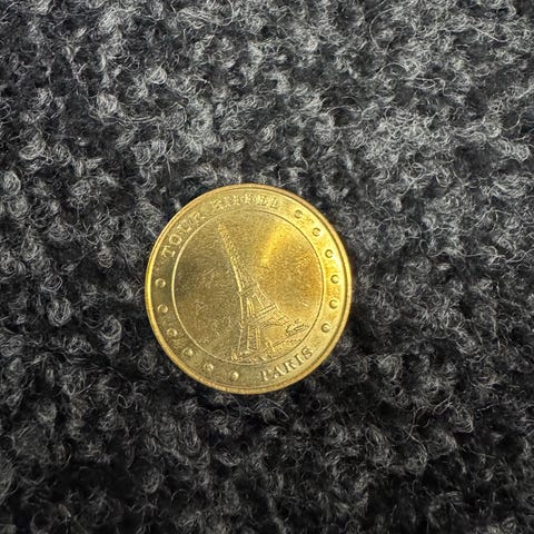 Suvenir mynter fra Frankrike med motiv av kjente turistattraksjoner. Myntene er gullfargede og har detaljerte motiver og inskripsjoner på fransk på begge sider. Egner seg som samleobjekt, minne fra reiser eller dekorativt innslag i samling av mynter og medaljer