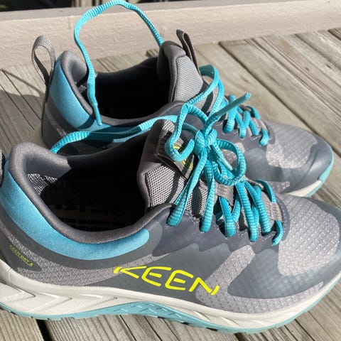 Keen tursandaler. Pent brukt en gang. Veldig gode sandaler med ordentlig bra og solide såler. Ble dessverre for små for meg, men kjøpte et større par. Står 37,5 på innsiden, men tenker den er ca 38.