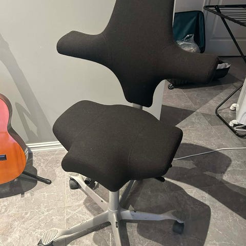 Pent brukt Håg Capisco 8106 selges rimelig. Sort trekk med grått fotkryss.