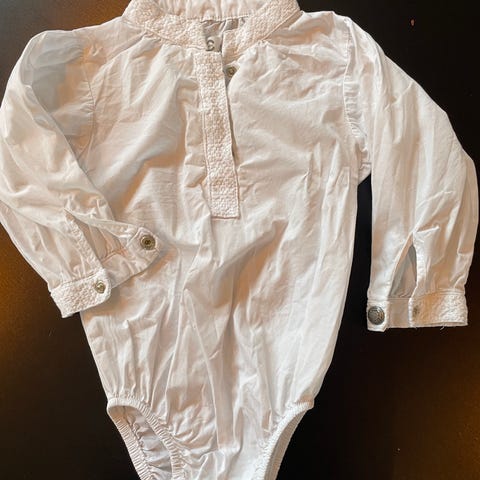 Bomullsbody til festdrakt med blondekanting og trykk knapplukning i kilen.