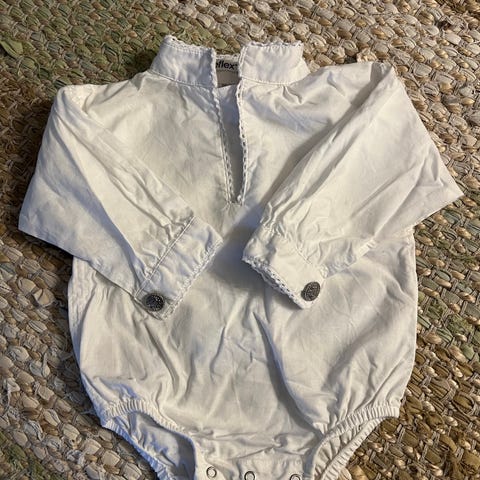 Body med blondekanting og tinnknapper til festdrakt fra sparkjøp (Nypris 249 kr) Brukt så vidt to ganger.