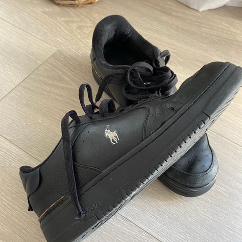 Polo Ralph Lauren sneakers/joggesko i størrelse 43. Skoene er i en mørk grå farge med snøring foran og gummisåle med mønster for grep. Klassisk lav modell med diskret logo på siden. Egnet som hverdagssko og fritidssko.