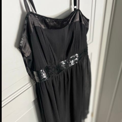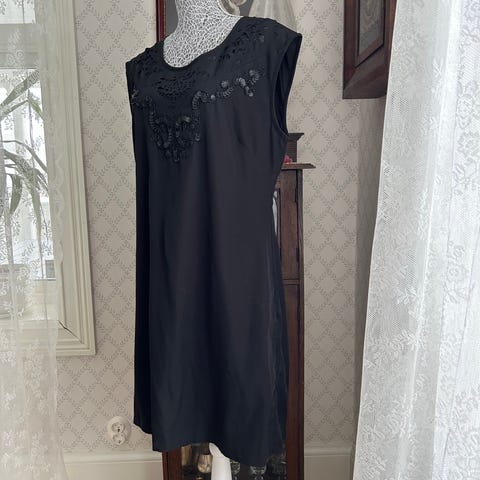 Selected Femme festkjole for dame i størrelse 40. Kjolen er svart og laget i bomullsmateriale. Modellen har ermeløst snitt og rund hals. Passer til bruk ved festlige anledninger og andre formelle settinger.