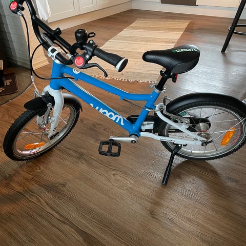 Selger en Woom 3 16 tommer barnesykkel pga overgang til størrelsen over. Pent brukt av ett barn i én sesong.