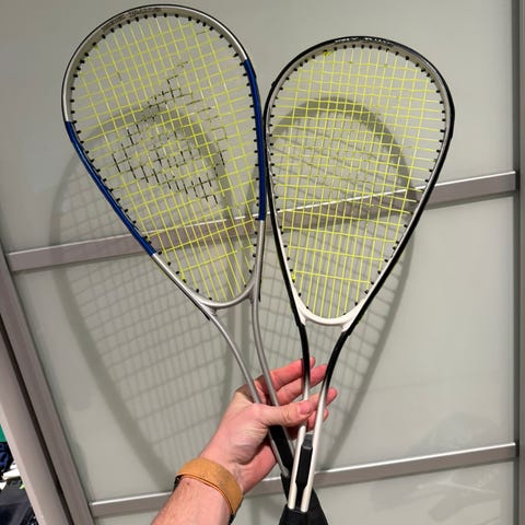 Jeg selger to eksemplarer av den legendariske Prince Airstick 130. Dette er modellen mange kjenner fra Ramy Ashours storhetstid, og de er i dag svært vanskelige å finne i så god stand.