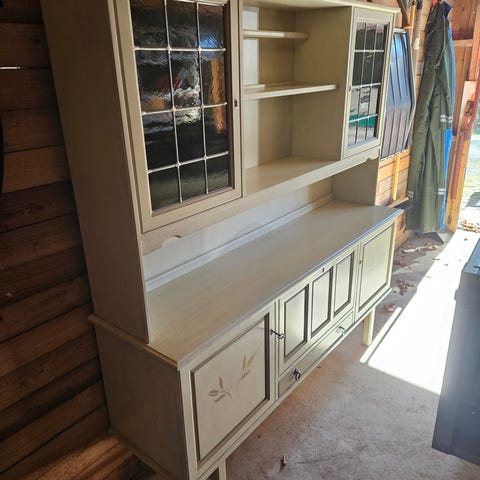 Pent vegghengt vitrineskap. Enkelt og greit å henge opp. Høyde er uten pyntelist på toppen. Den er lett å skru av. Totalt med pyntelist er 45cm. Må hentes.