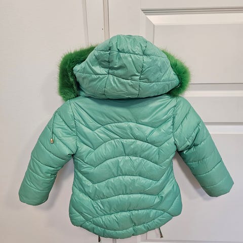 Søt boblejakke vinterjakke med fin grønn ferg