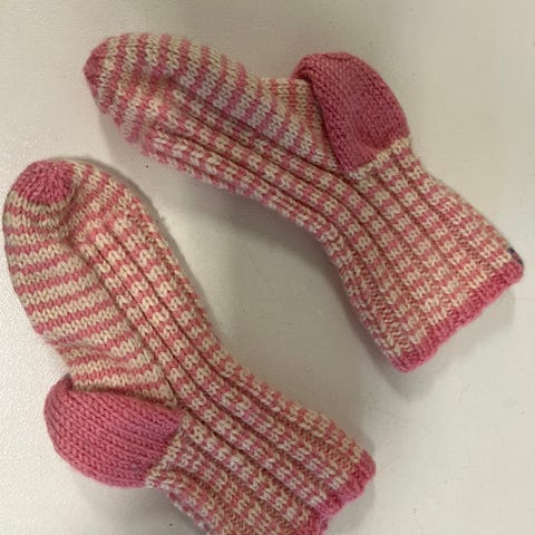 Hjemmestrikket raggsokker, ca str. 33, selges for 300 kroner. Strikket med sportsragg garn. Vasket med parfymeri milo før salg. Aldri brukt.