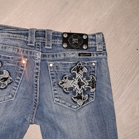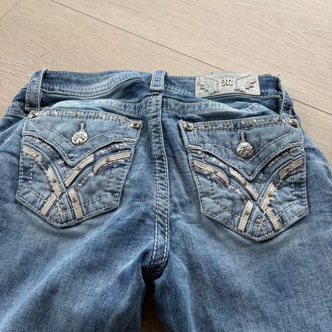 Miss Me jeans frå 00-talet i ljos pastell babyblå / turkis farge, og med lågt liv. Veldig fin farge no om våren!