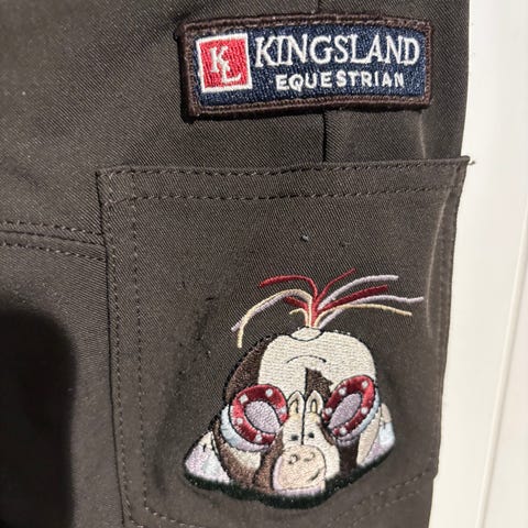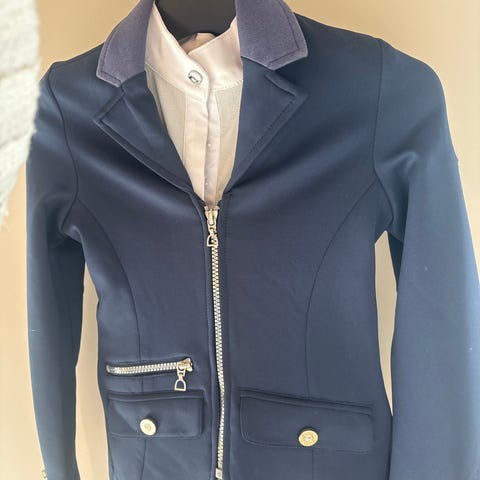 Østern Brug Rideskole hettegenser i mørk blå farge. Genseren har hette og lang erm, samt trykk med «Østern Brug Rideskole» på ryggen. Kjøpt ny, pent brukt av ett barn. Str 120-130. Ny pris 700kr.