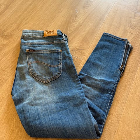 Lee Scarlett High jeans for dame i blå denim. Modellen har høy midje og er laget i denim med stretch for bedre passform og komfort. Buksen har størrelse M og livvidde W30. Klassisk femlommersmodell med glidelåsgylf og knapp i front, samt beltehemper i linningen. Egnet til hverdagsbruk og kan kombineres med ulike topper og sko for både uformelle og mer pyntede antrekk.