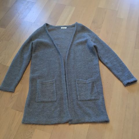 Donna cardigan for dame i størrelse L/XL.Lang modell i nydelig grønn farge med lange ermer. Cardiganen har v-hals, knappelukking foran og lommer i sidene. Strikket materiale i 34% ull, 34% mohair, 27% polyester, 5% elastan, som gir et mykt og varmt plagg egnet til hverdagsbruk og som ekstra lag over topper og kjoler.