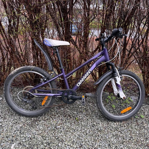 Diamant barnesykkel med 20" hjul i gulgrønn farge. Sykkelen har dempegaffel foran, felgbrems foran og bak, samt gir bak. Utstyrt med skjermer bak, støtte og reflekser i hjulene. Passer til barn som trenger en sykkel med 20-tommers hjul til hverdagsbruk og sykling på vei og lett grus.