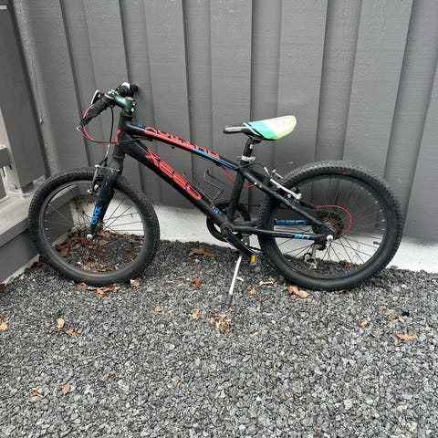 Alprace barnesykkel med 20" hjul. Sykkelen har ramme og gaffel tilpasset barn, med rett styre og standard sete. Utstyrt med gir bak og felgbremser foran og bak. Passer til barn som bruker 20-tommers hjulstørrelse, egnet til sykling på vei og lett grus. Fargekombinasjon hovedsakelig svart med blå og grønne detaljer.