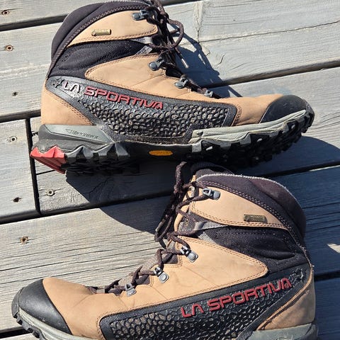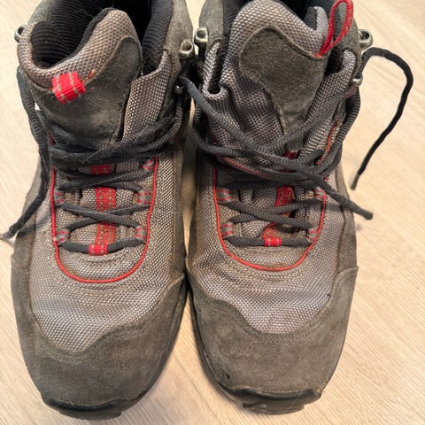 Bergans tursko i skinn i svart farge, størrelse 44. Overdel i glatt skinn med metallhemper for snøring. Grovmønstret yttersåle tilpasset fottur og bruk i variert terreng. Skoene er ankelhøye og gir støtte rundt ankelen. Passer til fotturer og generell bruk utendørs. Lite brukt