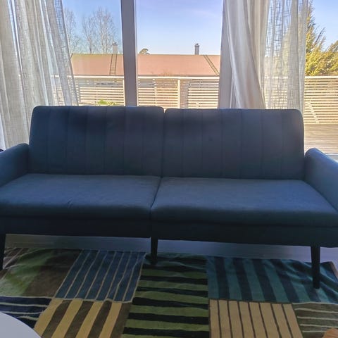 Gistrup sofa 3 seter i mørk blå farge selges.