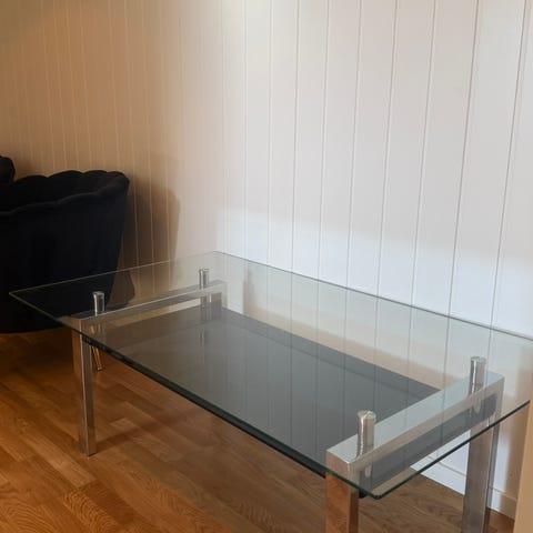 Salongbord. Synlige bruksmerker, se bilder. Mål 90cm x 90cm. Høyde 37cm.