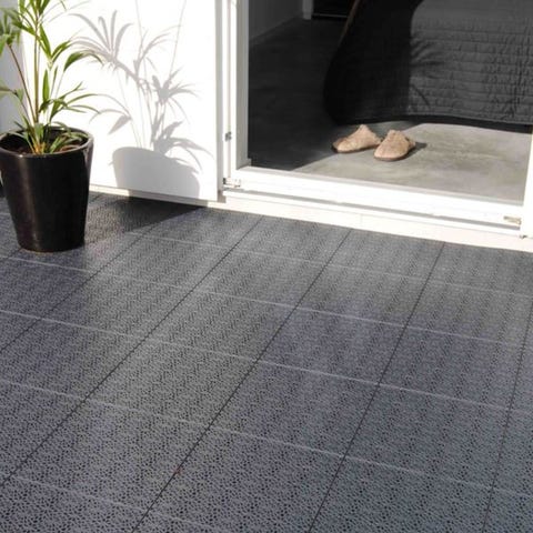 Informasjon fra Ikeas nettsider: Gulvplatene tåler det meste av vær og er enkle å vedlikeholde siden de er laget av plast. Du kan skjære til gulvplatene slik at de passer perfekt i hjørner og rundt søyler osv. Du kan enkelt ta gulvplatene fra hverandre og sette dem sammen igjen dersom du vil vaske gulvet under dem.