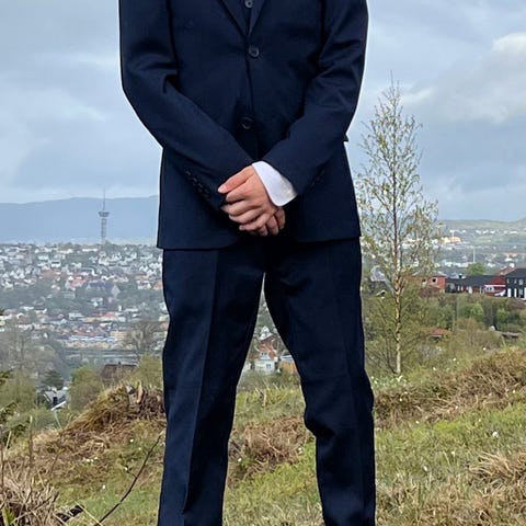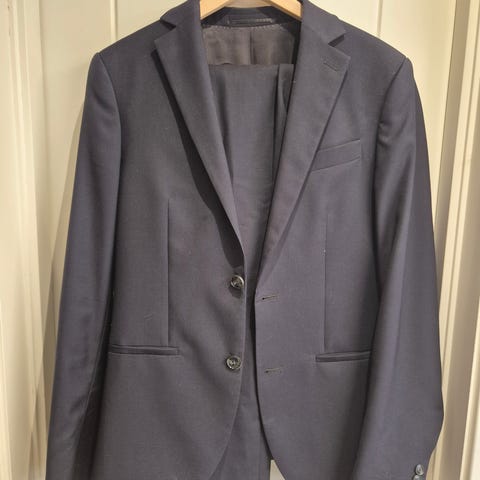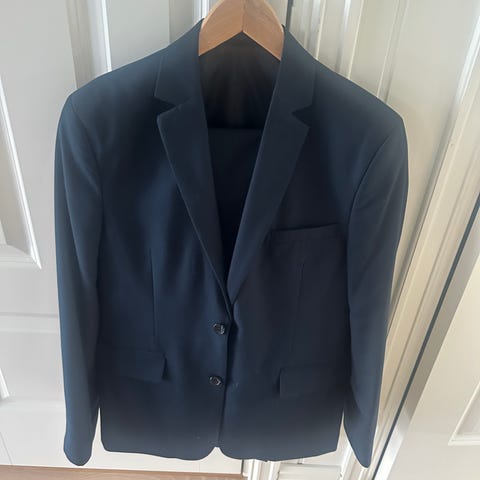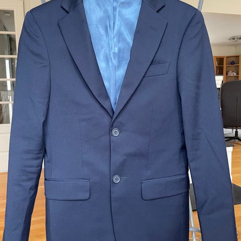 H&M blazer for junior i str 170 (14+). Blazeren og buksa er blå og laget i polyester. Slim fit.