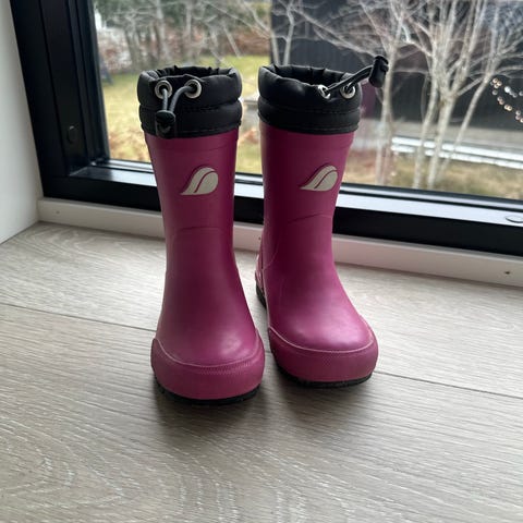Selger pent brukt Ponny gummistøvler, str. 28, farge fiolett, unisex. Støvelen har avtakbar såle, tekstilfor og refleksdetaljer.