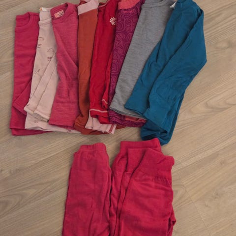 Diverse ullklær i 100% merinoull str 104. Varierende bruksgrad, se bilder for info om plagg