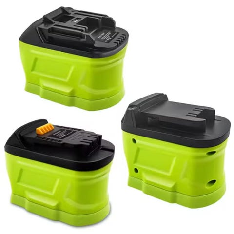 Med denne adapteren kan du bruke Milwaukee 18V eller DeWalt 18/20V batterier på Ryobi batteriverktøy.
