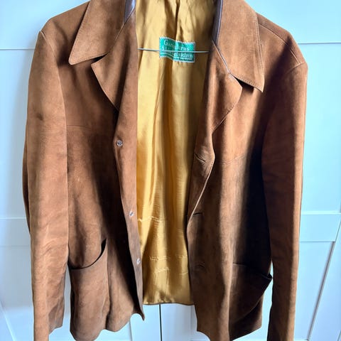 Gammel skinnjakke ca str 40-42. Ekte geiteskind. Produsert i Norge. Stenberg skinnbekledning. . Manstayl. Dette er en rett herremodellmen jeg har selv brukt den.