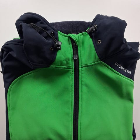 Stormberg jakke for herre i størrelse XL. Jakken er grå med røde glidelåser og Stormberg-logo på bryst og rygg. Ytterstoffet er i nylon med PU-belegg, og jakken har fôr i polyester.