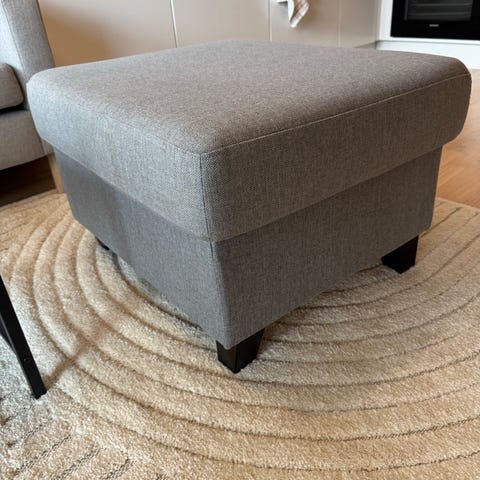 Den kan brukes både som ekstra sitteplass, fotpall eller som oppbevaring i stue, soverom eller gang. Mykt trekk og solid konstruksjon gjør den både komfortabel og funksjonell.