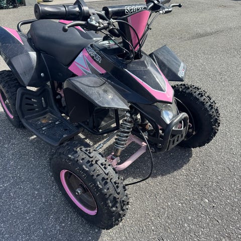 Superkjekk ATV, kjøpt til gutten da han var 4 år. Den har en låsemekanisme for fart (se bilde), slik at man kan kjøre sent tio man er trygg, eller i tettbygd strøk.