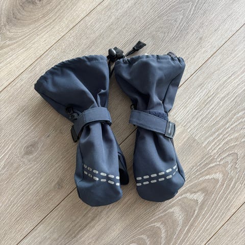 Selger pent brukte votter fra Name it i soft Shell som er perfekte på vår og høst når det er for kaldt til å gå uten votter, men for varmt for tykke vintervotter.
