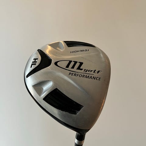 Mgolf Performance HL driver med FLEX-R skaft. Køllehodet er merket «High MOI» og er konstruert for høy stabilitet ved treff. Skaftet har regular flex (FLEX-R), som passer mange typer spillere. Driveren leveres med tilhørende headcover merket «1». Farge på køllehode er hovedsakelig svart med sølvfarget slagflate, og skaftet er svart med hvite detaljer.
