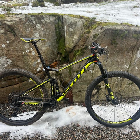 Fox 34 perfekt får enduro å litt freeride. Fox nude bak funker greit, men kan bli byttet ut hvis nødvendig i framtiden.
