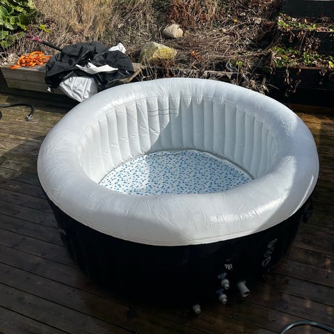 Det er montert nye hodeputer, samt et nyere isolert lokk/cover som bidrar til bedre varmeholding og energieffektiv drift. Trapp for enkel adkomst følger også med.