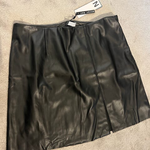 Ubrukt skinnskjørt med asymmetrisk front frå Selected. Glidelås bak. Str. 38. Superkult skjørt som eg ikkje skulle ha kjøpt tidleg i graviditet, fekk aldri brukt det og no passar det ikkje 😑 Nypris 1299 kroner.
