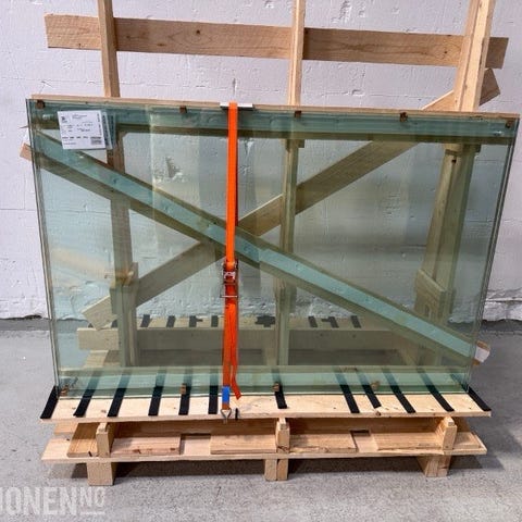 To stk sikkerhetsglass med mål 333 cm i lengde og 99 cm i bredde.