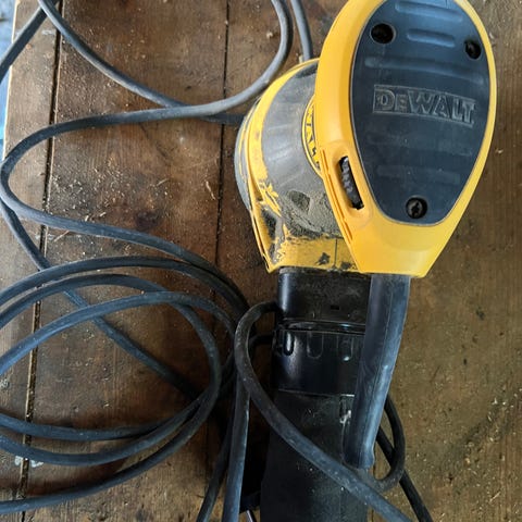 Mirka DEOS 3.0 elektrisk plansliper i gul og svart. Maskinen har rektangulær slipeplate og kabeltilkobling. Betjeningspanelet har av/på-knapp, justering av hastighet og indikatorlamper. Egner seg til sliping av treverk, sparkel og andre flater der det er behov for jevn og kontrollert sliping. Leveres med fastmontert strømkabel.