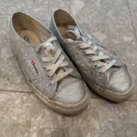 Superga barnesko i størrelse 22 i fargen rose gold med glitter