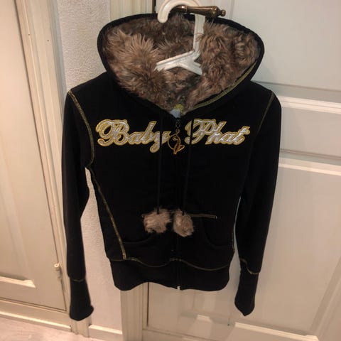 svart hettegenser med print, glidelås og pels unisex
