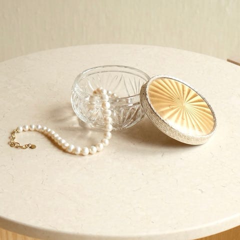 Ideell for oppbevaring av smykker, nøkler eller andre småting. Den gjør seg også svært godt som et rent dekorelement på en hylle eller et stuebord.