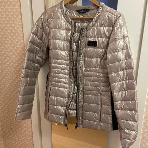 Kingsland ridejakke/stevnejakke for herre i størrelse 48. Klassisk modell i fargen navy. Jakken er knapt brukt. Jakken er i mørk blå/navy farge med kontrastbånd i rødt, hvitt og blått på krage og lommer. Modellen har knepping foran og nettingfôr på innsiden for bedre ventilasjon.